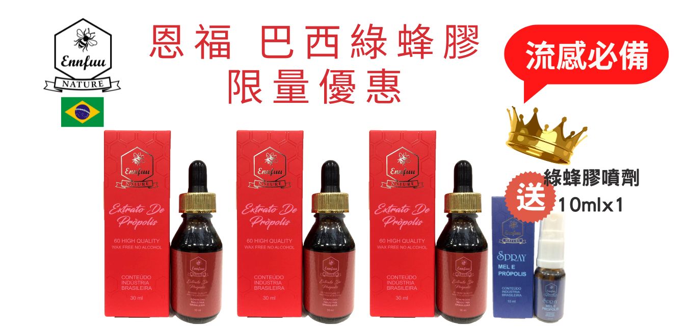 巴西綠蜂膠60無酒精3瓶組送綠蜂膠噴劑10mlx1