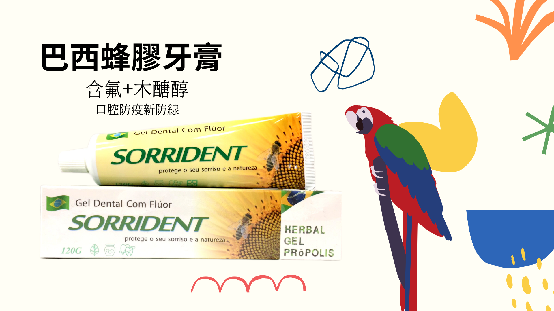 蜂膠成分,天然氟+木醣醇,除去汙垢,洗淨效果佳,添加天然